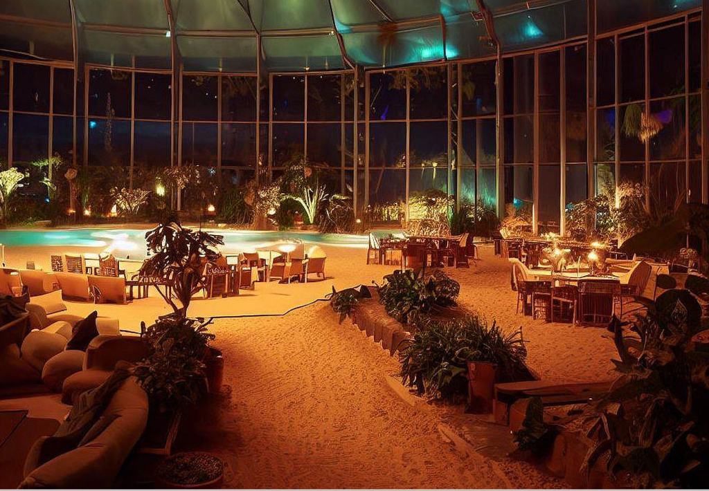 Sisäpihan keskellä oli valtava lasinen puolipallon muotoinen kupoli, jota ympäröi upea puutarha. Se oli yli sata metriä halkaisijaltaan ja melkein yhtä korkea kuin sitä ympäröivä rakennus.